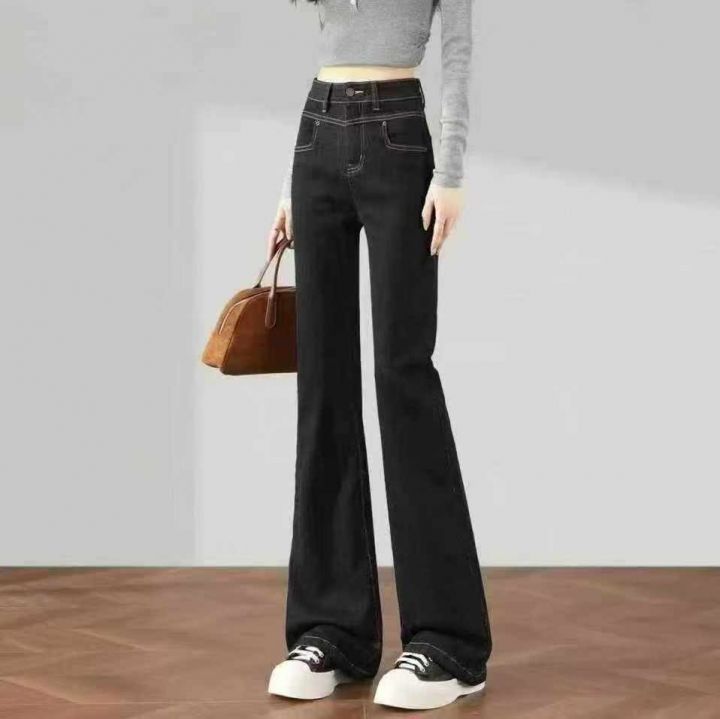 秋季新品洗水棉宽松百搭胖MM复古微喇叭牛仔长裤,独立...
