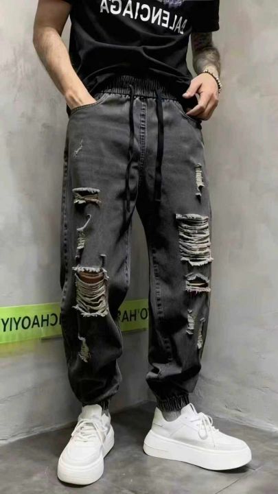 秋季新品洗水棉网红破洞个性松紧腰牛仔裤,独立包装,码数M-3XL码,248件,全清8.8元超低价秒杀!