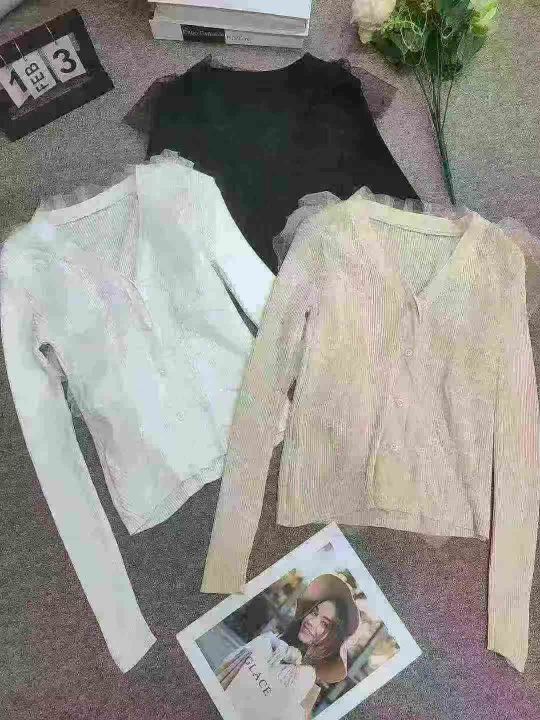 拼接网纱针织衫开衫修身显瘦网红靓妹毛衣打底小外套,独立包装,五个颜色,1850件,清9.5元,分➕5毛