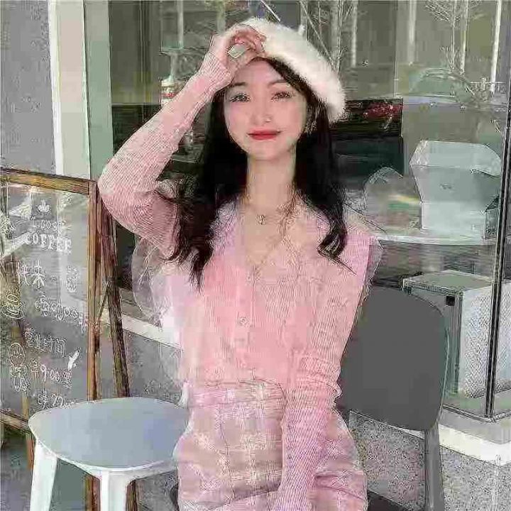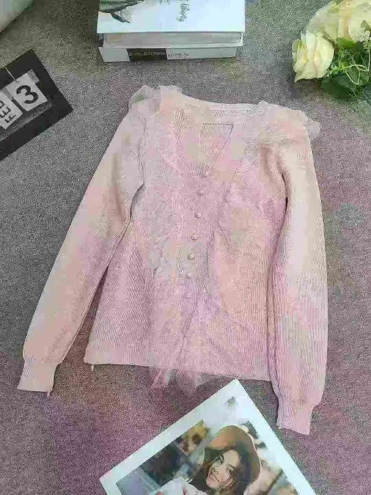 拼接网纱针织衫开衫修身显瘦网红靓妹毛衣打底小外套,...