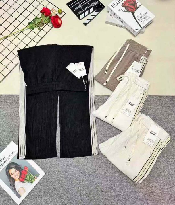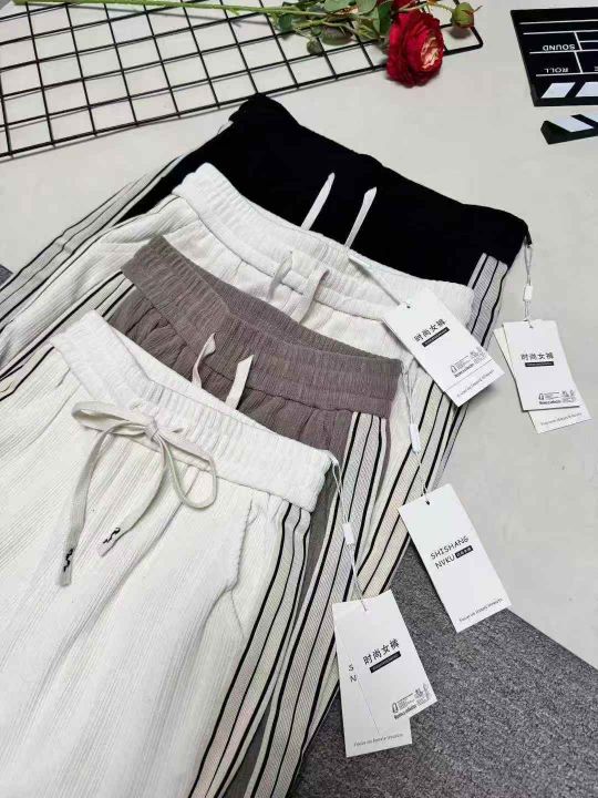 天猫精选450条,春秋款时尚撞色条纹休闲高腰垂感显瘦直筒窄版阔腿裤,天猫在售款 整款三色,裤头内里包边,超高品质可入实体店,码数S~5XL码 独立包装带吊牌,全清13.8元分货加一[烟花][烟花][烟花]。 货号:1303