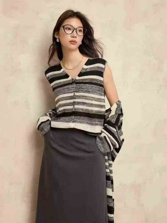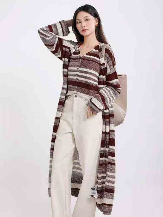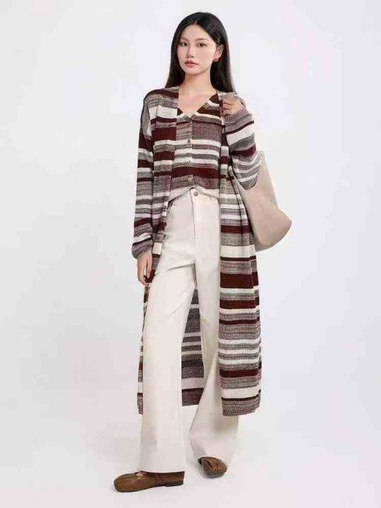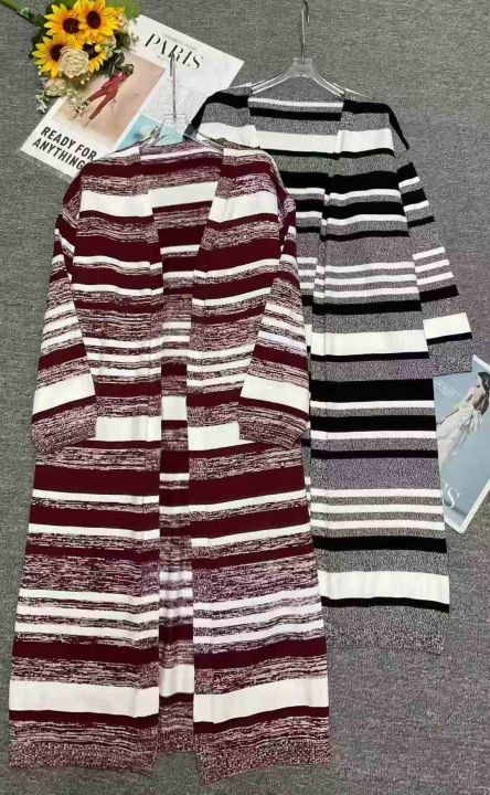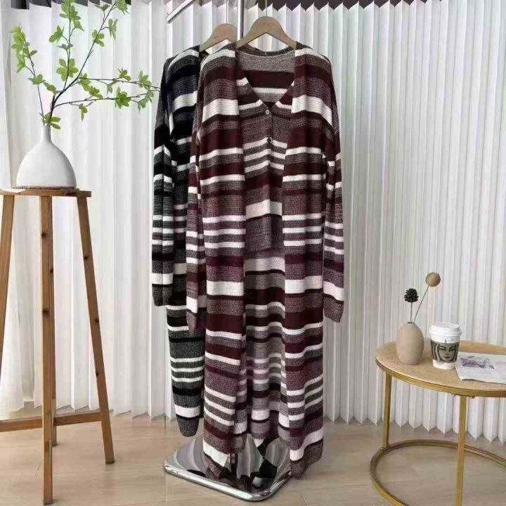 捡漏款,秋冬新款网红赫本风大长款条纹针织毛衣开衫,...