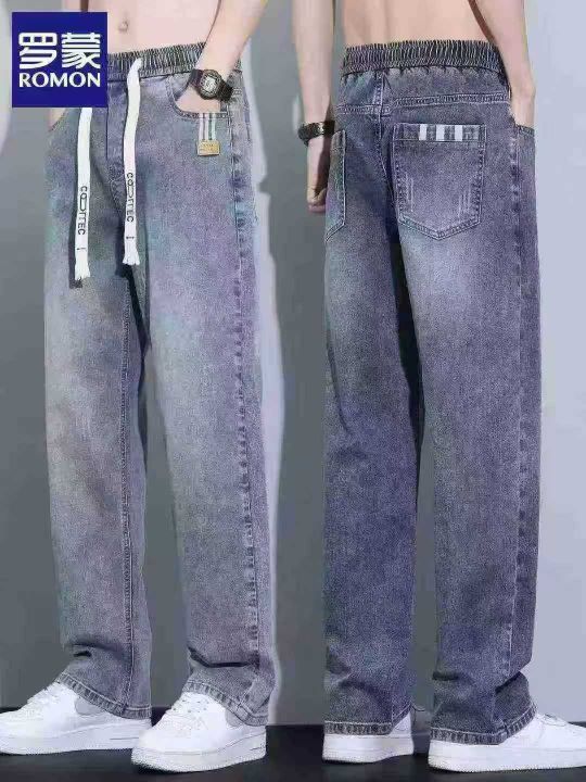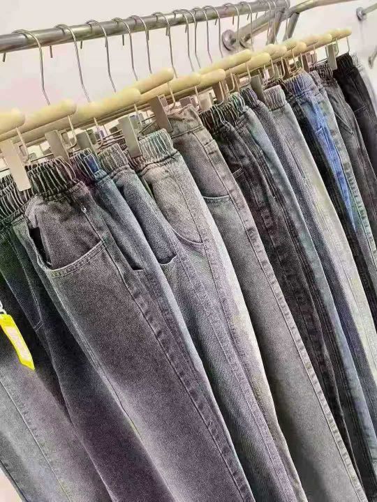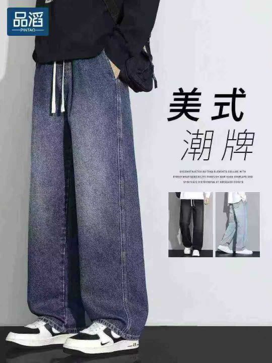 潮牌男装松紧腰牛仔阔腿裤2200条全清13.8元分货+1元,...