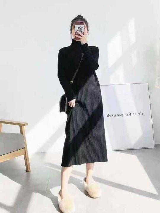 102件广州十三行品牌 温柔风半高领针织连衣裙加厚内搭毛衣裙宽松坑条打底中长裙女春款慵懒 单款单色,S-XL码 独立包装带吊牌。。 货号:1303