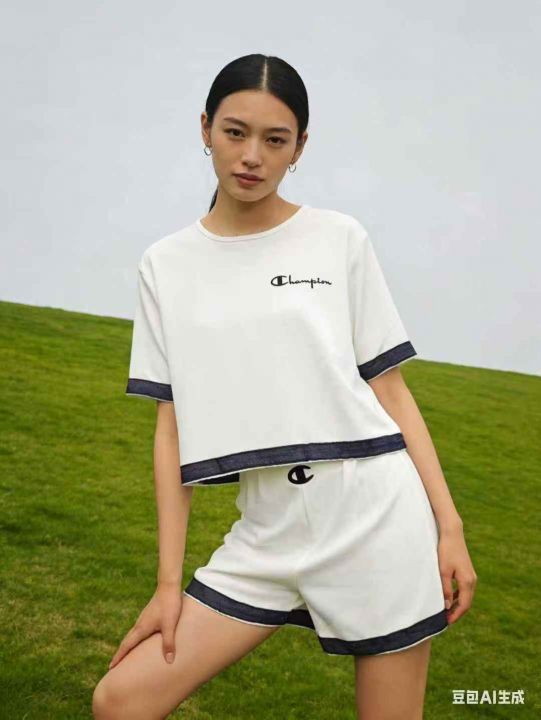 冠军休闲时尚套装女夏季2025年新款减龄小个子短裤两件套,独立包装带吊牌,...