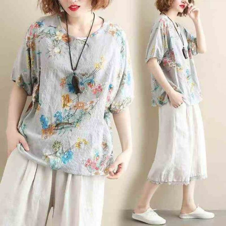 夏季新款宽松休闲大码洋气轻熟碎花妈妈装小衫,独立包装,单款4色,码数L--...