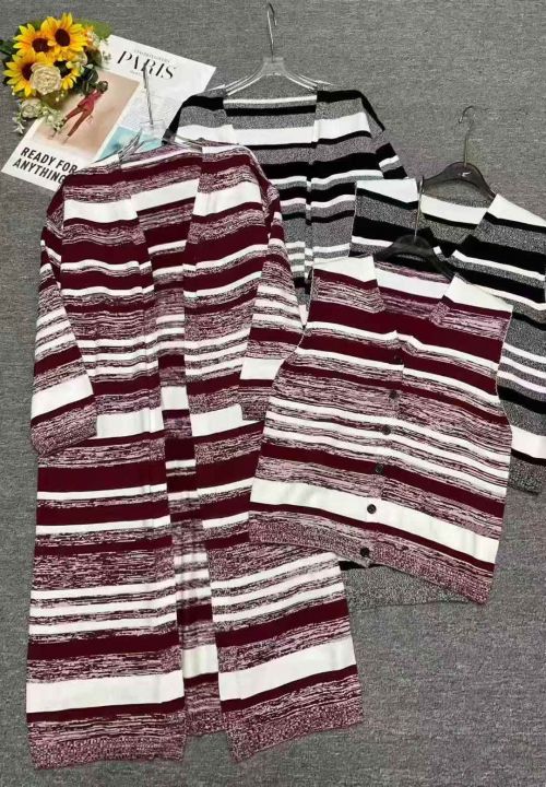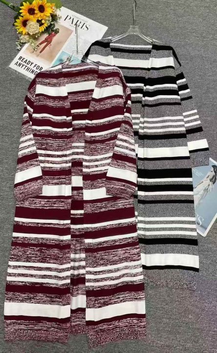捡漏款,秋冬新款网红赫本风大长款条纹针织毛衣开衫,套装有20套左右,单件披肩有18件左右,38件,全清7.9元超低价秒杀!。 货号:1303