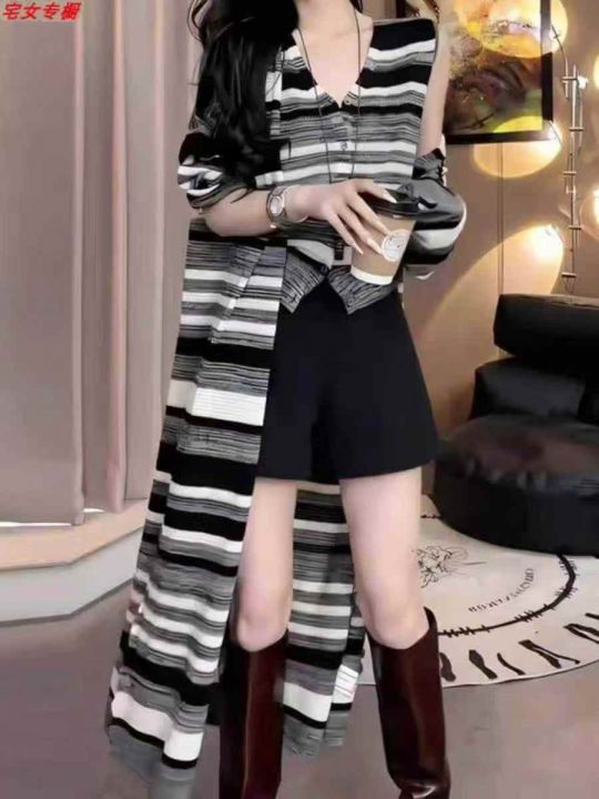 捡漏款,秋冬新款网红赫本风大长款条纹针织毛衣开衫,...