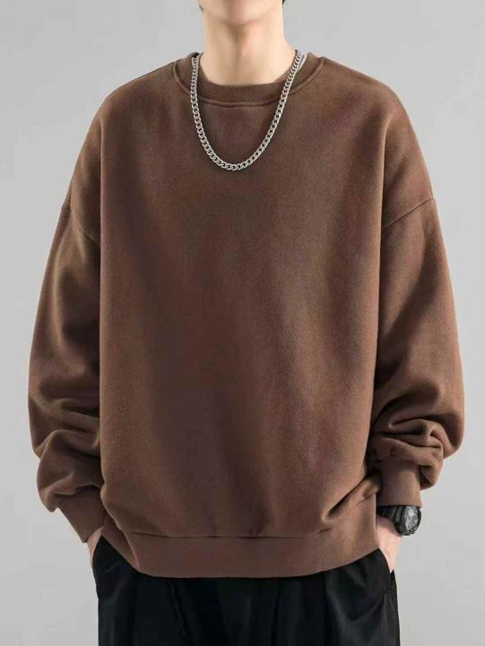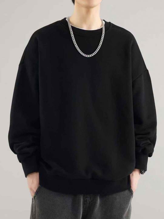 秋冬新款男士宽松简约百搭净版圆领棉卫衣,独立包装,...