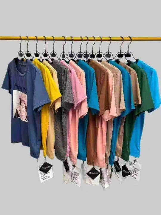 韩版时尚潮流洋气印花圆领短袖T,花型图案多,领口有包边,部分有工艺,品质非常好,有独立包装带吊牌,数量680件左右,码数S-L,全清8.8,分货+1。 货号:1303