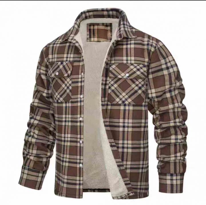 8.8清83件男女同款加绒长袖翻领格子毛绒内衬单排扣宽...