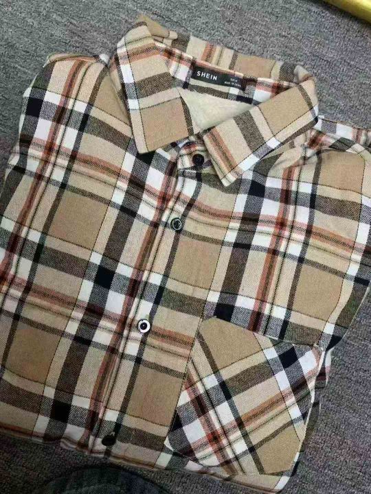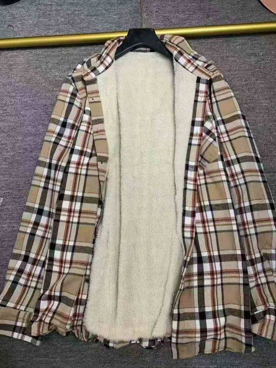 8.8清83件男女同款加绒长袖翻领格子毛绒内衬单排扣宽松版型格子衬衣 独立拉链包装