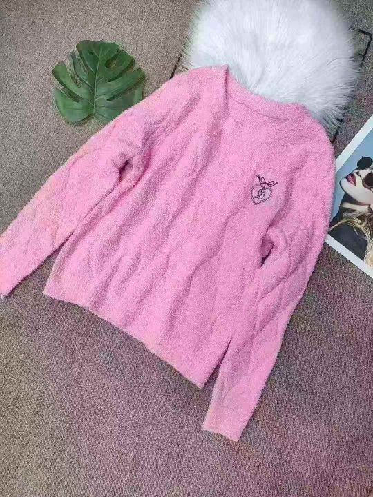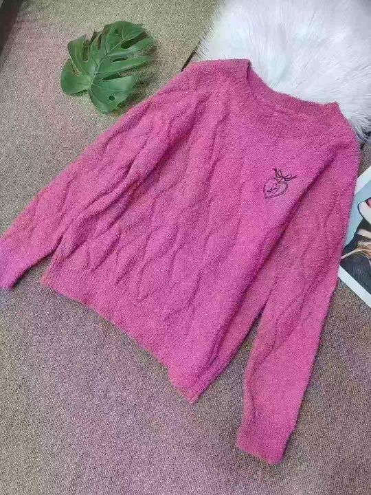 刺绣圆领套头毛衣女长袖秋冬保暖打底小颗粒绒针织衫,独立包装,均码,290件,清6.99元,分货加5毛。 货号:1303