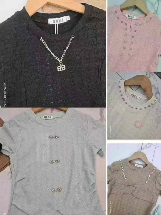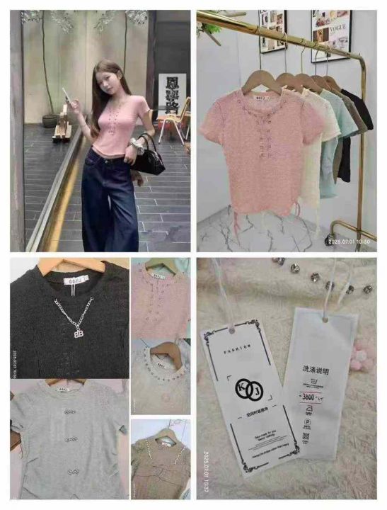 数量615件,全部原独立包装带吊牌,实体店高品质,泡泡提花面料,都带重工(有珍珠款,钻石款,吊坠款),面料厚实,分货➕1,超性价比(共5个款多色)。 货号:1323