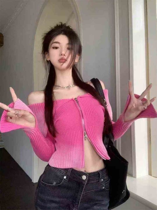 秋季新品撞色水磨印花双头拉链毛衣开衫,独立包装,均...
