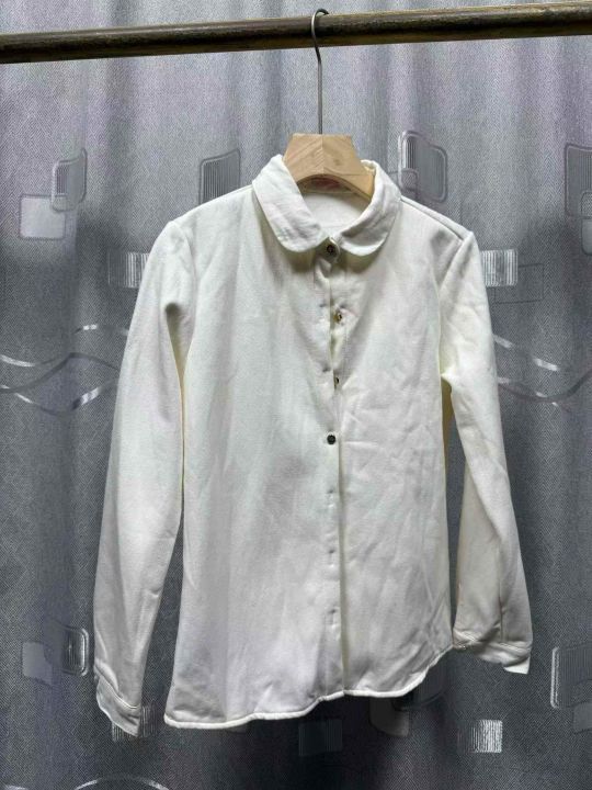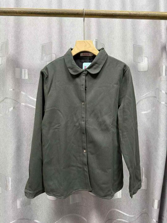日系简约舒适加厚婴儿绒质感通勤减龄元宝领子母扣保暖长袖衬衫,面布纯棉质量好,独立包装,S - 2 x L码,380件左右,全清7.8块。 货号:1303