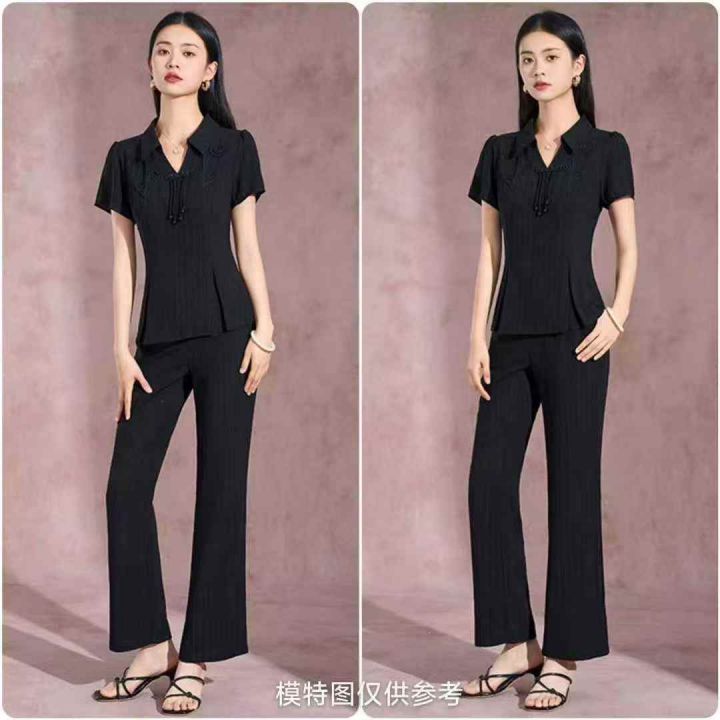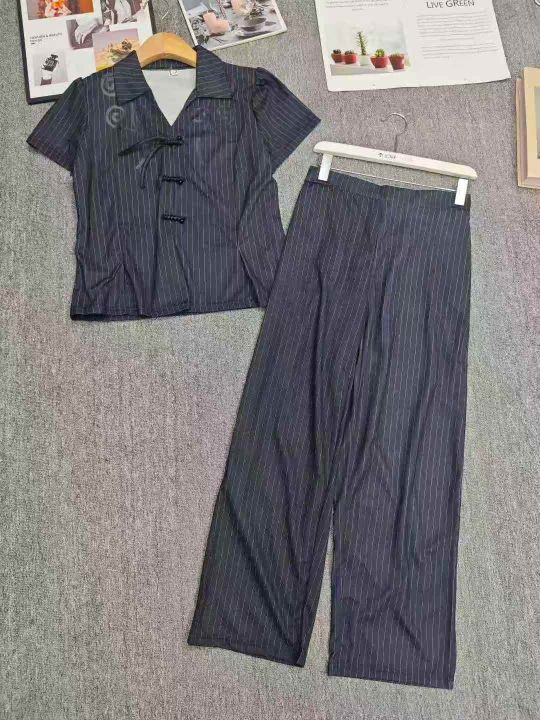 电商仓回收569套气质国风改良新中式条纹翻领短袖长裤套装,码数2-4-6码。面料柔软有弹力,款式新颖,货品干净,有独立包装,分货➕0.5。 货号:1303
