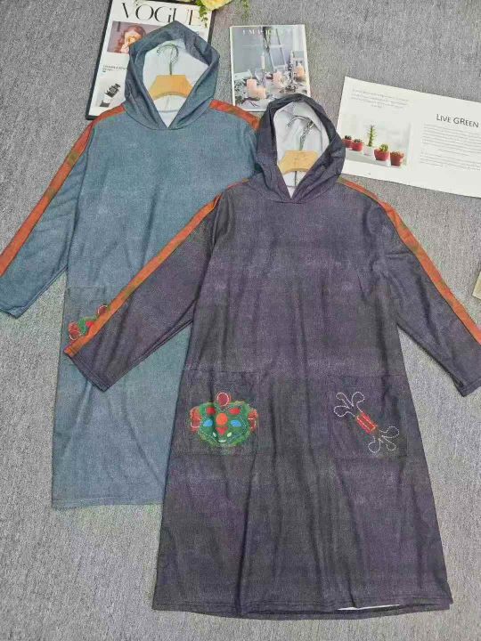 电商仓回收1003件仿牛仔复古小众慵懒风宽松胖MM连帽连衣裙,码数2-4-6码。面料透气舒适,上身宽松显瘦,对身材包容度高。有独立包装,分货➕1。 货号:1303