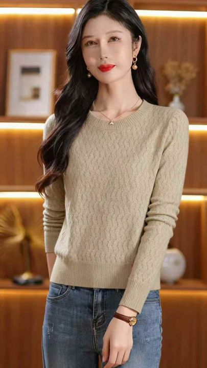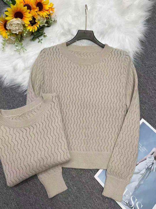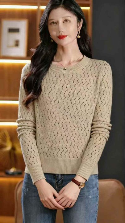 秋季新品时尚洋气镂空织花圆领套头毛衣,独立包装,均...
