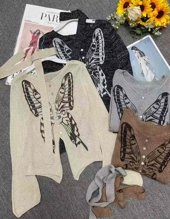 秋季新品爆款美拉德色系个性独特炸街蝴蝶设计款长袖针织衫,独立包装,均码面料柔软舒适宽松版,205件,全清6.9元超低价秒杀!分货加一!