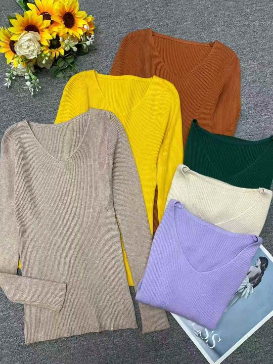秋冬新款净版简约坑条包芯纱V领打底套头毛衣,独立包装,均码面料软糯舒适弹力大,219件,全清5.9元超低价秒杀!。 货号:1303