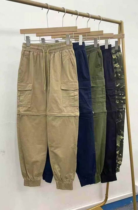 524件棉质可拆卸两用束脚工装裤。松紧抽绳设计,面料舒服,实体店品质。S一2X L,独立包装带吊牌(模特图仅供参考)全清13.8分货加1。 货号:1303