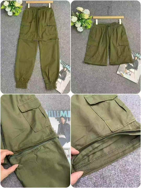 524件棉质可拆卸两用束脚工装裤。松紧抽绳设计,面料...