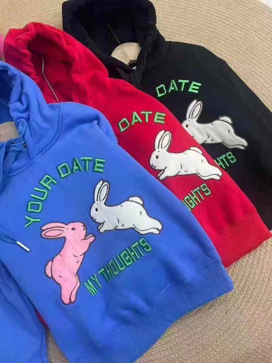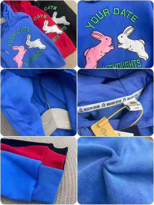 1869件高品质兔子刺绣连帽加绒儿童卫衣。双层连帽设计,后领包边,面料柔软舒适,看得见的品质。码数清单看大货图,拉链式独立包装带品牌。全清8.8分货加1。 货号:1303
