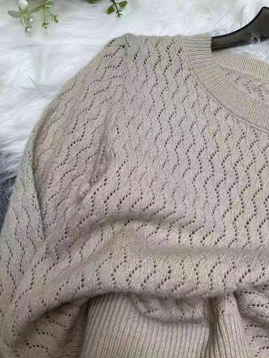 秋季新品时尚洋气镂空织花圆领套头毛衣,独立包装,均...