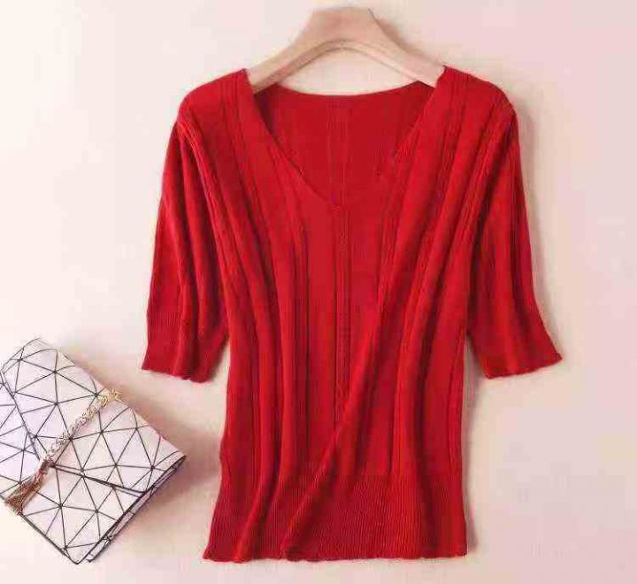 2.8元秒杀[爱心][爱心] 七分袖女士v领针织打底衫内搭毛衣,弹力很大,一包四件,独立吊牌,效果图仅供参考,码数s-xl,数量2450件左右。。 货号:24862