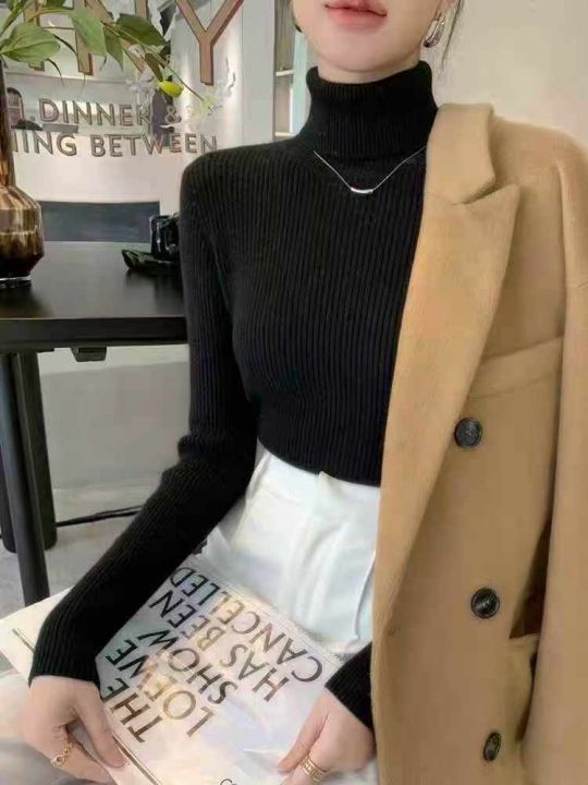 秋冬新款净版简约高级感超好看高领坑条包芯纱套头毛衣...
