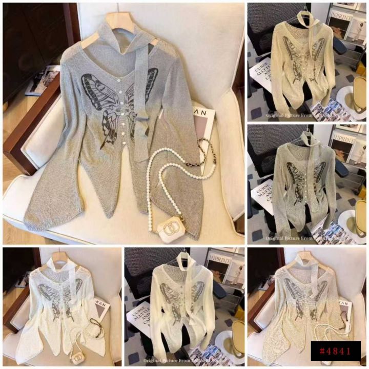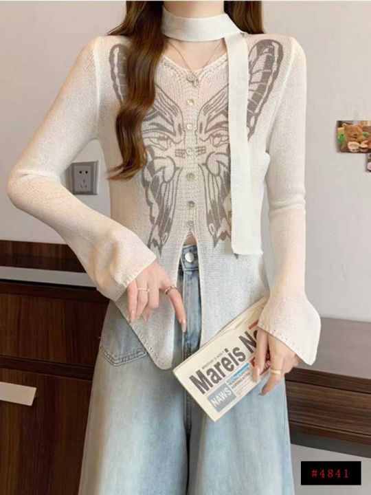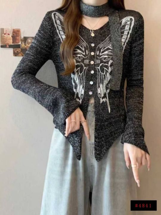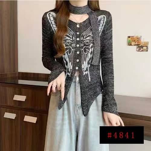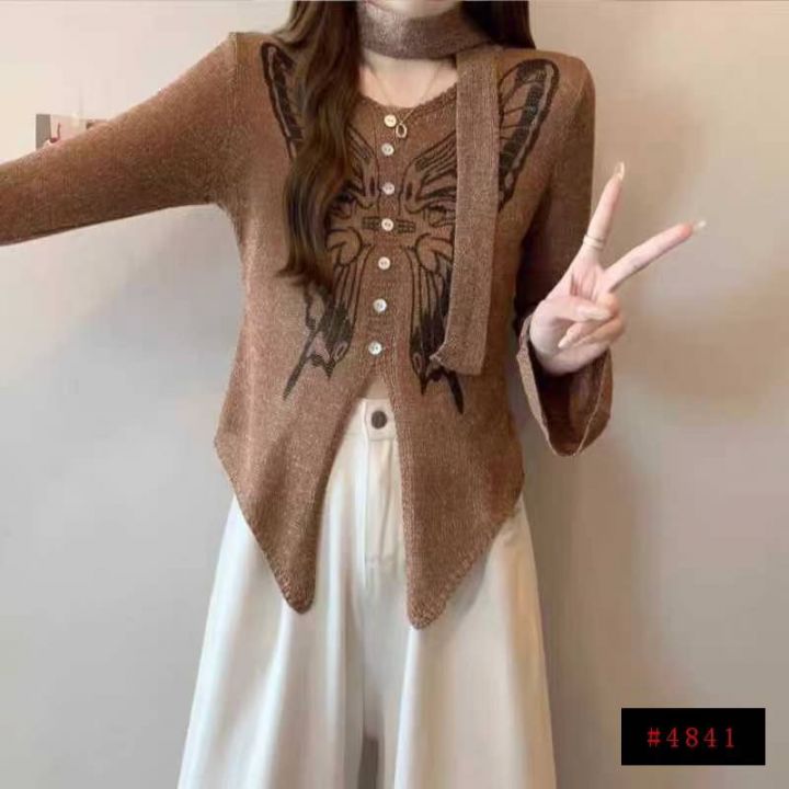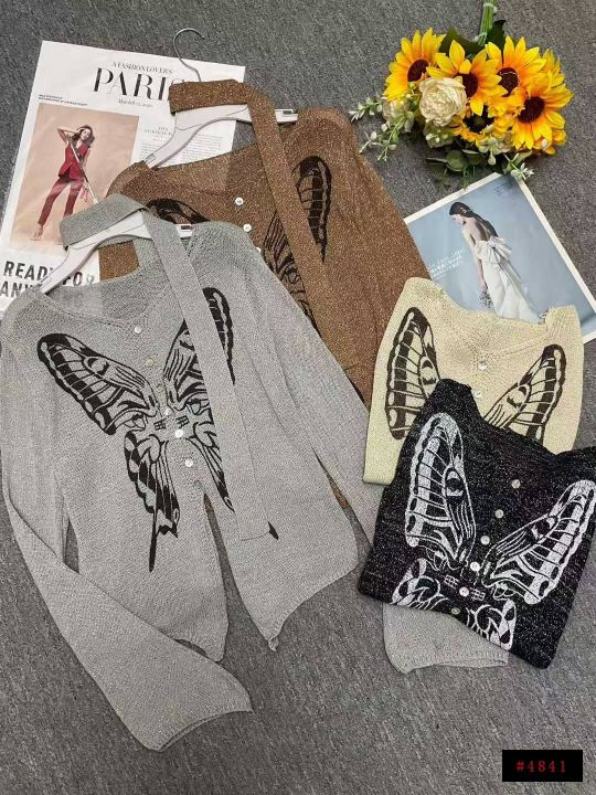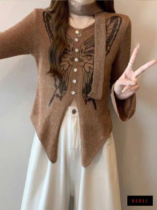 秋季新品爆款美拉德色系个性独特炸街蝴蝶设计款长袖针...