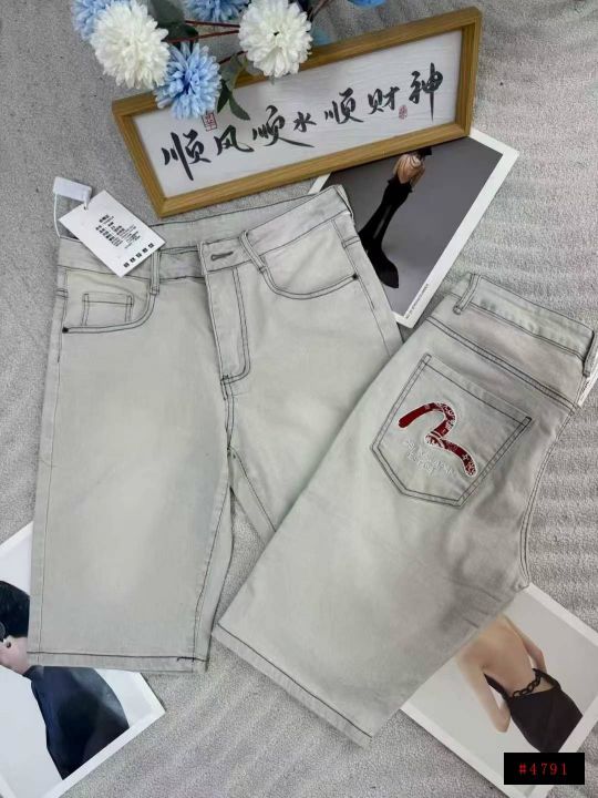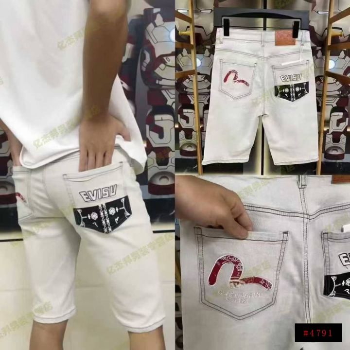 男士新款潮牌弹力牛仔中裤网红潮流刺绣款休闲修身,