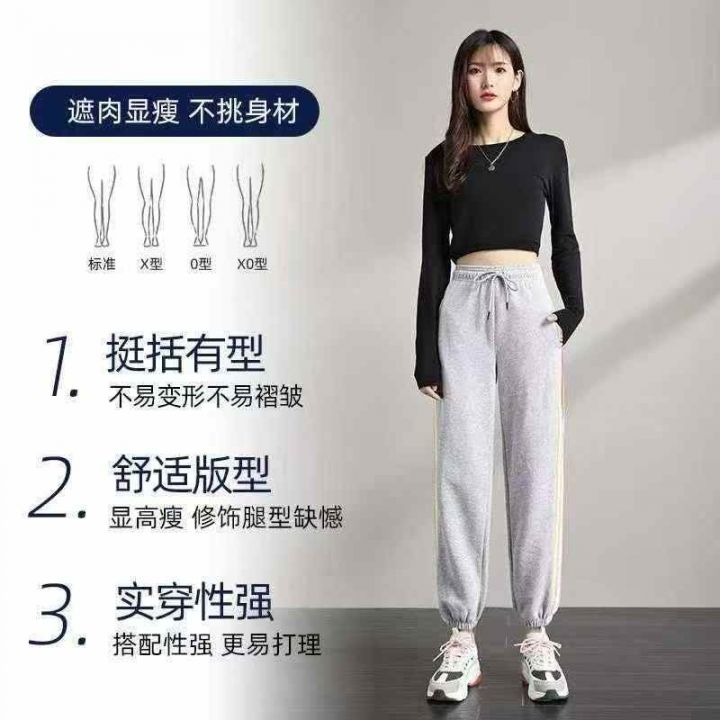 纯棉春秋宽松时尚百搭修身显瘦休闲气质束脚运动裤ins...
