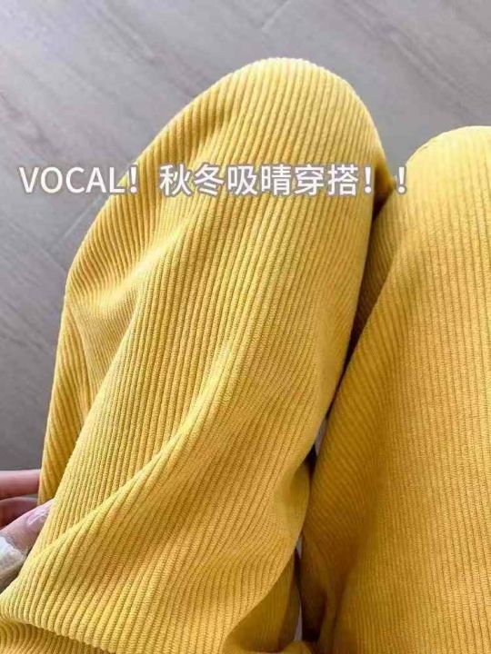 拉夏贝尔黄色复古灯芯绒休闲裤女冬季宽松高腰阔腿,数量120件,码数s-2xl,独立包装,全清5.5元。 货号:1303