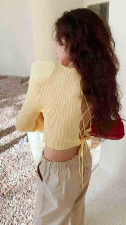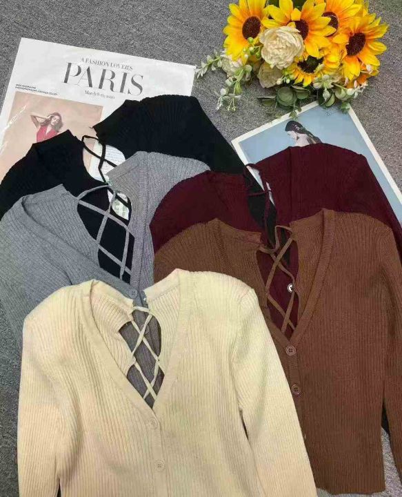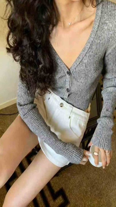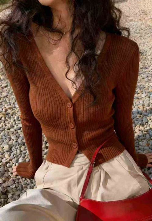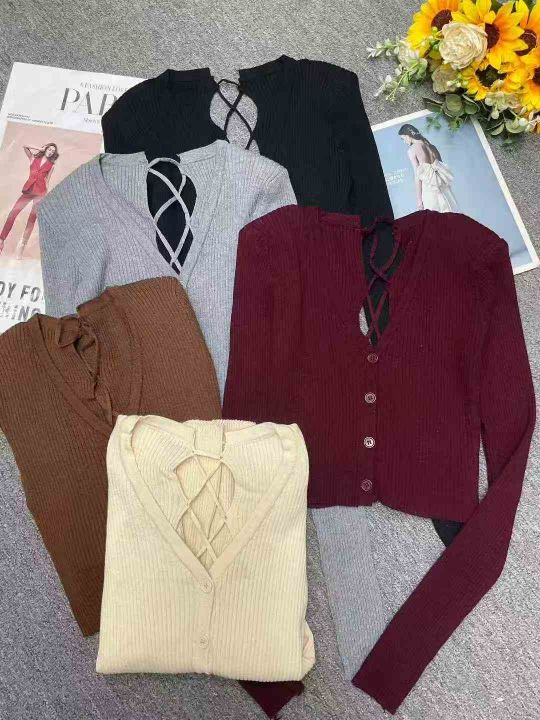 春秋季新款性感辣妹纯欲风设计感V领排扣后背交叉镂空坑条包芯纱针织开衫,独立包装,均码面料软糯舒适弹力大,228件,全清6.9元超低价秒杀!