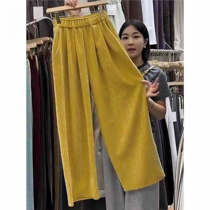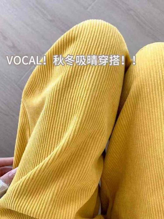 拉夏贝尔黄色复古灯芯绒休闲裤女冬季宽松高腰阔腿,数量120件,码数s-2xl,独立包装,全清5.5元。 货号:1323