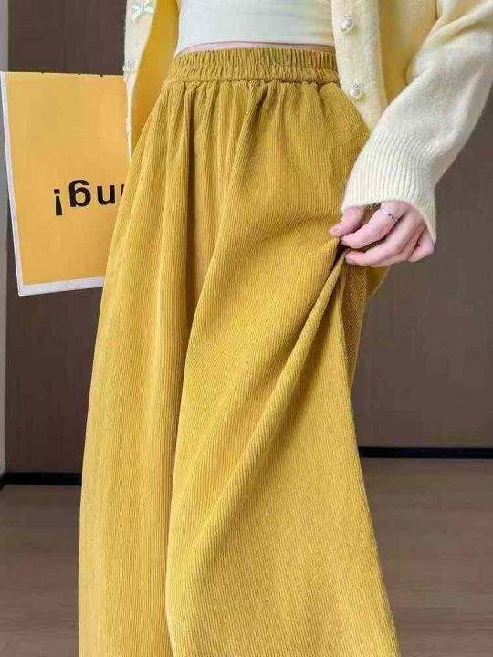 拉夏贝尔黄色复古灯芯绒休闲裤女冬季宽松高腰阔腿,数...