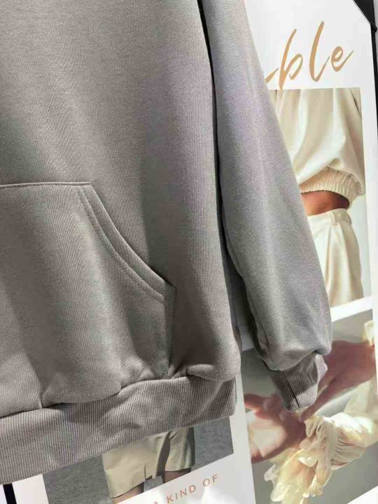 900件秋冬宽松男女同款灰色慵懒风连帽加绒卫衣,面料...