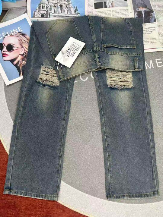 美式街头水洗破洞男士宽松阔腿牛仔裤,单款单色,独立...