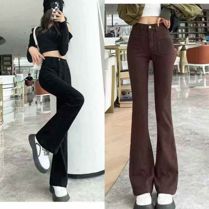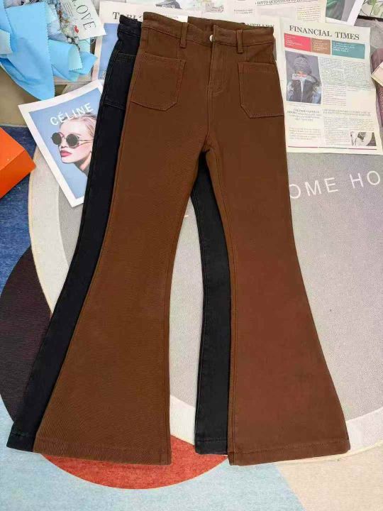 高腰加绒加厚微喇叭女土弹力牛仔裤,整款2个颜色,独...
