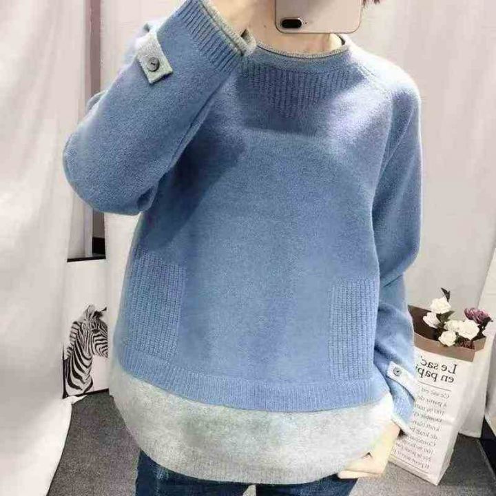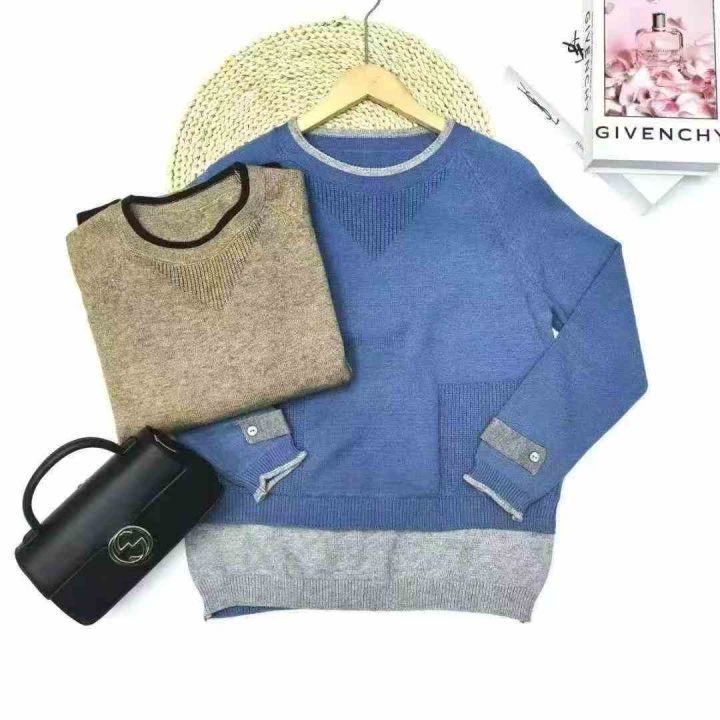 针织套头假两件毛衣整款两色,货品干净整洁可入实体店,数量:1500左右,码数:M-L,独立包装。