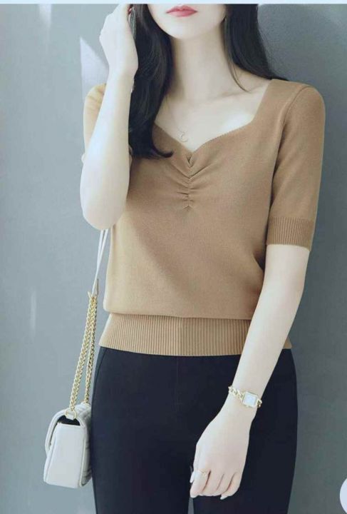 夏季新款温柔风宽松百搭冰丝复古V领针织T桖,独立包装均码面料软糯舒适弹力大,330件,全清5.9元超低价秒杀!分货加一!。 货号:1303