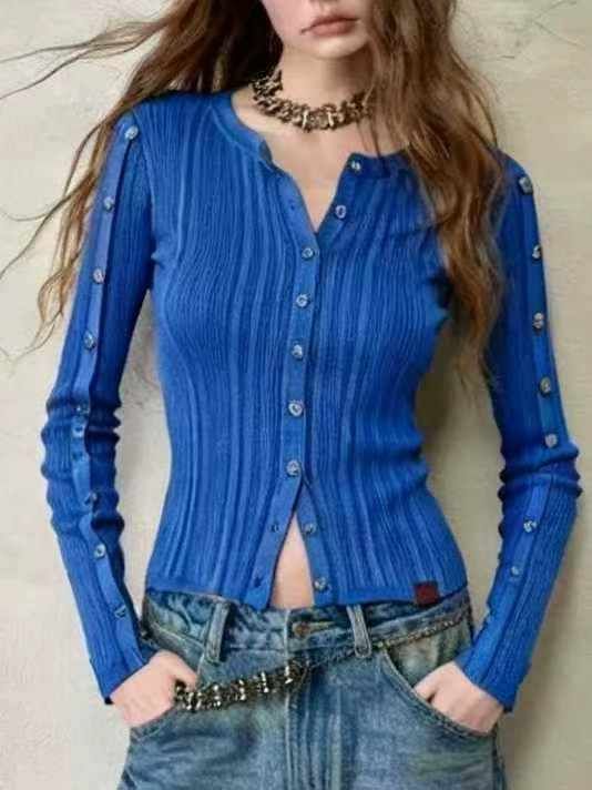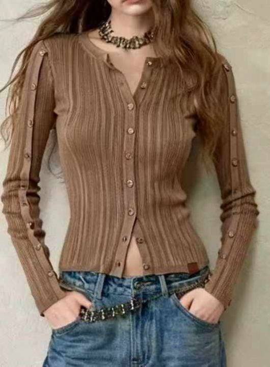 秋季新品美式纽扣水磨设计款针织毛衣开衫,独立包装,...