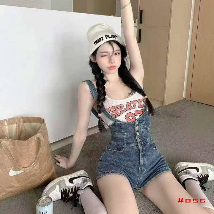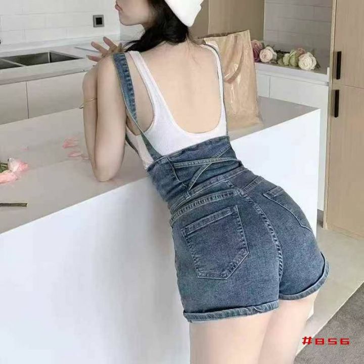 夏季新款靓妹女装弹力修身显瘦牛仔背带短裤,独立包装...