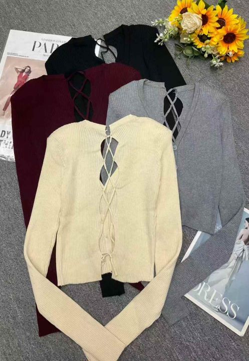 春秋季新款性感辣妹纯欲风设计感V领排扣后背交叉镂空坑条包芯纱针织开衫,独立包装,均码面料软糯舒适弹力大,228件,全清6.9元超低价秒杀!。 货号:1303
