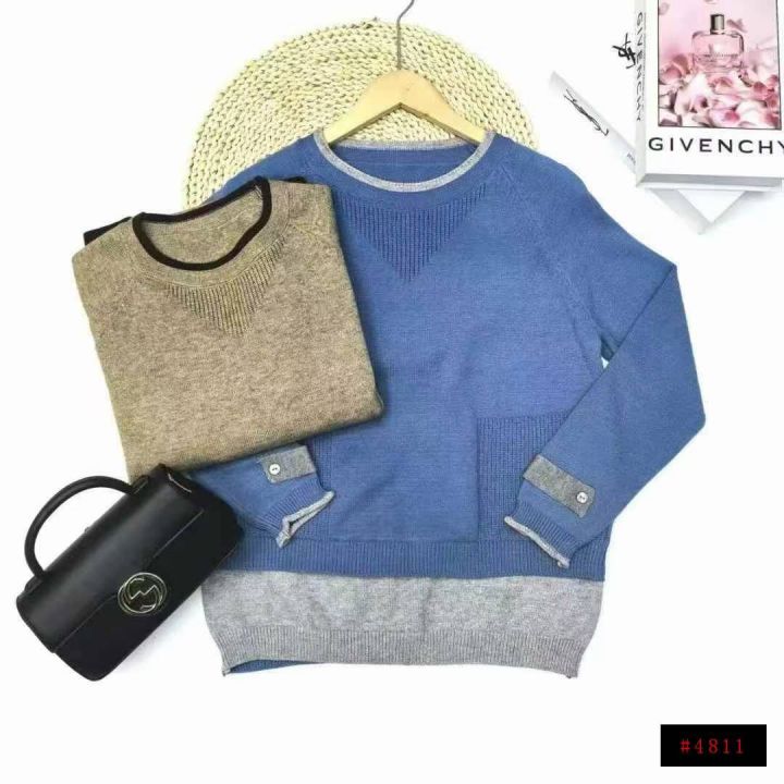 针织套头假两件毛衣整款两色,货品干净整洁可入实体店,数量:1500左右,码数:M-L,独立包装。@_@