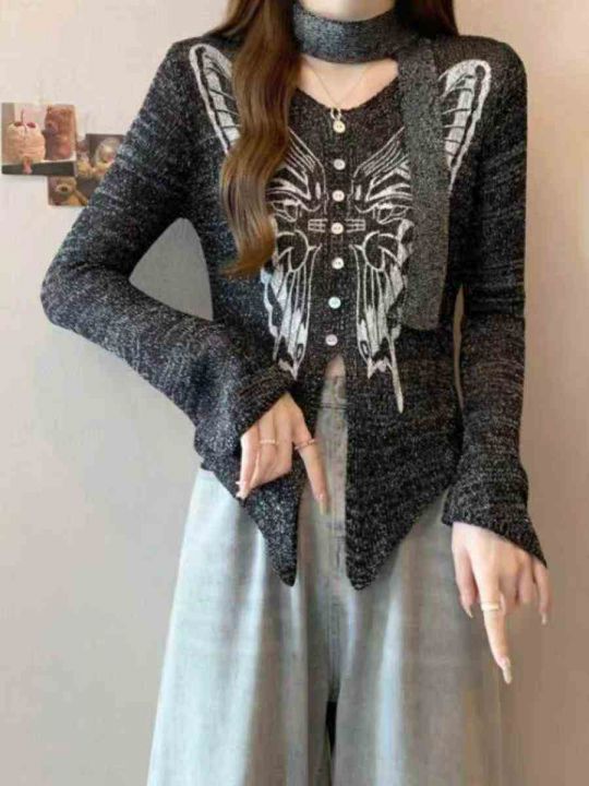 秋季新品爆款美拉德色系个性独特炸街蝴蝶设计款长袖针...