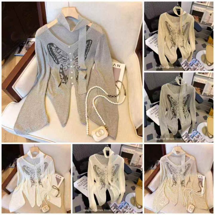 秋季新品爆款美拉德色系个性独特炸街蝴蝶设计款长袖针...