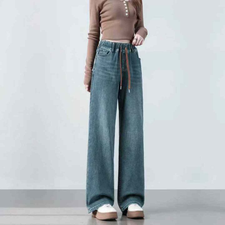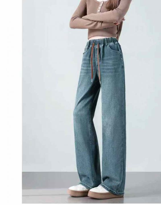 捡漏款,冬季新款宽松高腰松紧腰直筒阔腿加绒牛仔裤,...